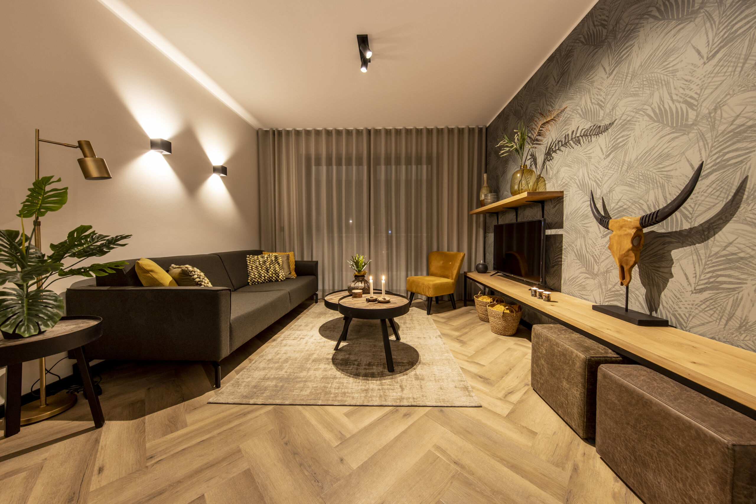 Die Inneneinrichtung vermittelt eine ländliche und warme Atmosphäre. Robuste Holztische, großzügige Möbel, Accessoires in Erdtönen und sanfte Farben an den Wänden. Kombinieren Sie dies mit einem natürlichen Boden, der nicht nur wie Holz aussieht, sondern sich auch so anfühlt.